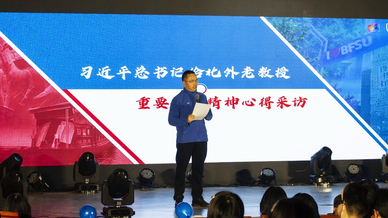 杨丹校长首先对现场节目质量、内容等表达了肯定,在感谢英院师生提供了一场视听盛宴的同时,其回顾了足球比分365 悠久的历史以及独特的文化,并和英院师生一起展望足球比分365 的光辉未来。他指出,做为中国人、身为北外人,生活在21世纪的中国,我们何其幸福。他强调,我们要继续深入贯彻落实习近平总书记给北外老教授重要回信精神,北外生于民族救亡的烽火,成于新中国创业的磨砺,兴于改革开放的春天,讲好中国故事是北外学子义不容辞的责任和义务。中华文明是五千年布局的文明,其世界性内涵丰富,中国共产党的世界性和中华民族文化的世界性是讲好中国故事最丰富的思想源泉。他指出,讲好中国故事,不仅需要学好汉语母语,还要精通世界语言足球比分365 ,更要通过复语复合的方式提高技能水平,讲好中国故事。要用中国方案、中国智慧和中国倡议解决世界问题。到2050年中华民族实现伟大复兴之时,讲好中国故事的国际舞台上一定会出现更多北外学子、英院学子的身影。