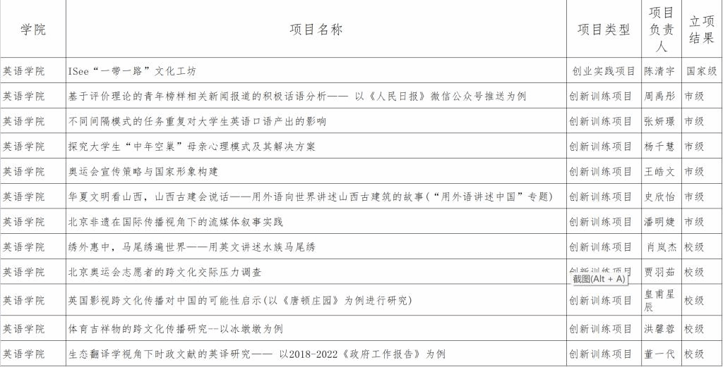 共申报立项项目23个,经过材料审核,专家评审,项目陈述等环节,共确定国家级项目1个,市级项目6个,校级项目5个。