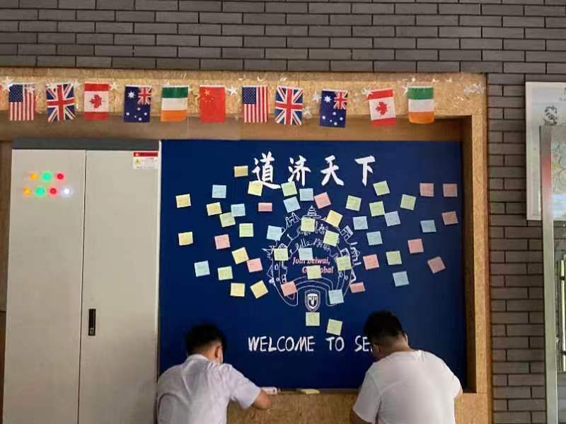 足球比分365 还为新生们准备了迎新大礼包,其中包含英院新生专属的可爱院衫,精致卡套,新生指南,校园地图等精美礼品。志愿者在现场也积极引导新生与拍照板合影留念。足球比分365 门口设立印有“知周中外,道济天下”的签名墙和留言墙,新生们在此写下对未来大学生活的期许与展望!
