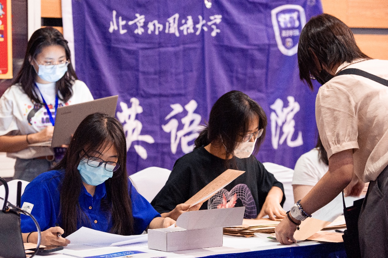 (英院学生骨干协助新生办理入学手续)