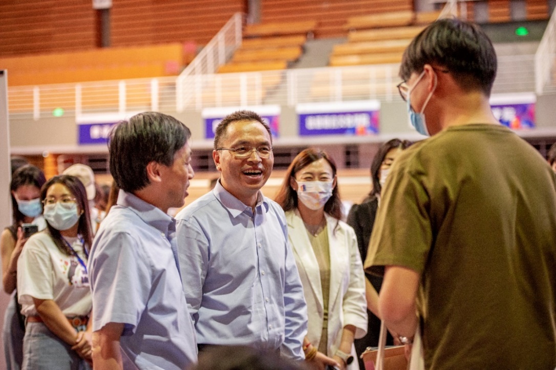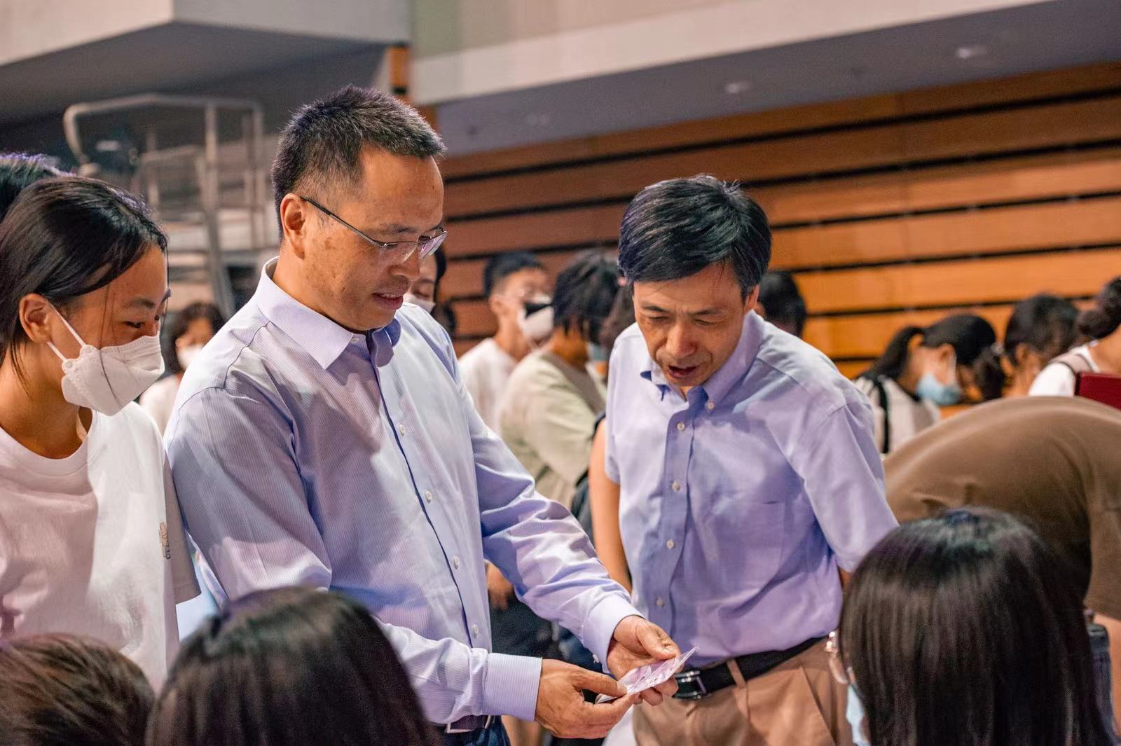 (校院领导与新生亲切问候交谈)