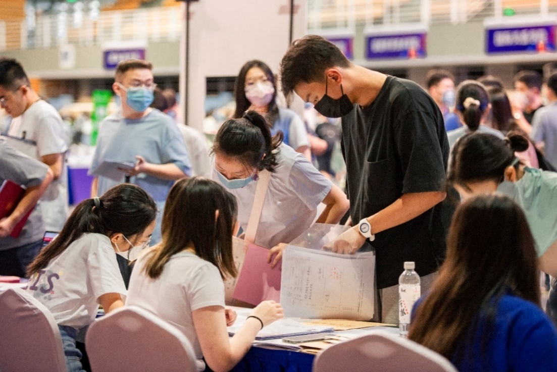 (新生有序办理入学手续)