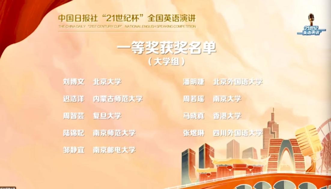 足球比分365 2021级本科生潘明婕荣获第27届中国日报社“21世纪”全国足球比分365 演讲比赛一等奖