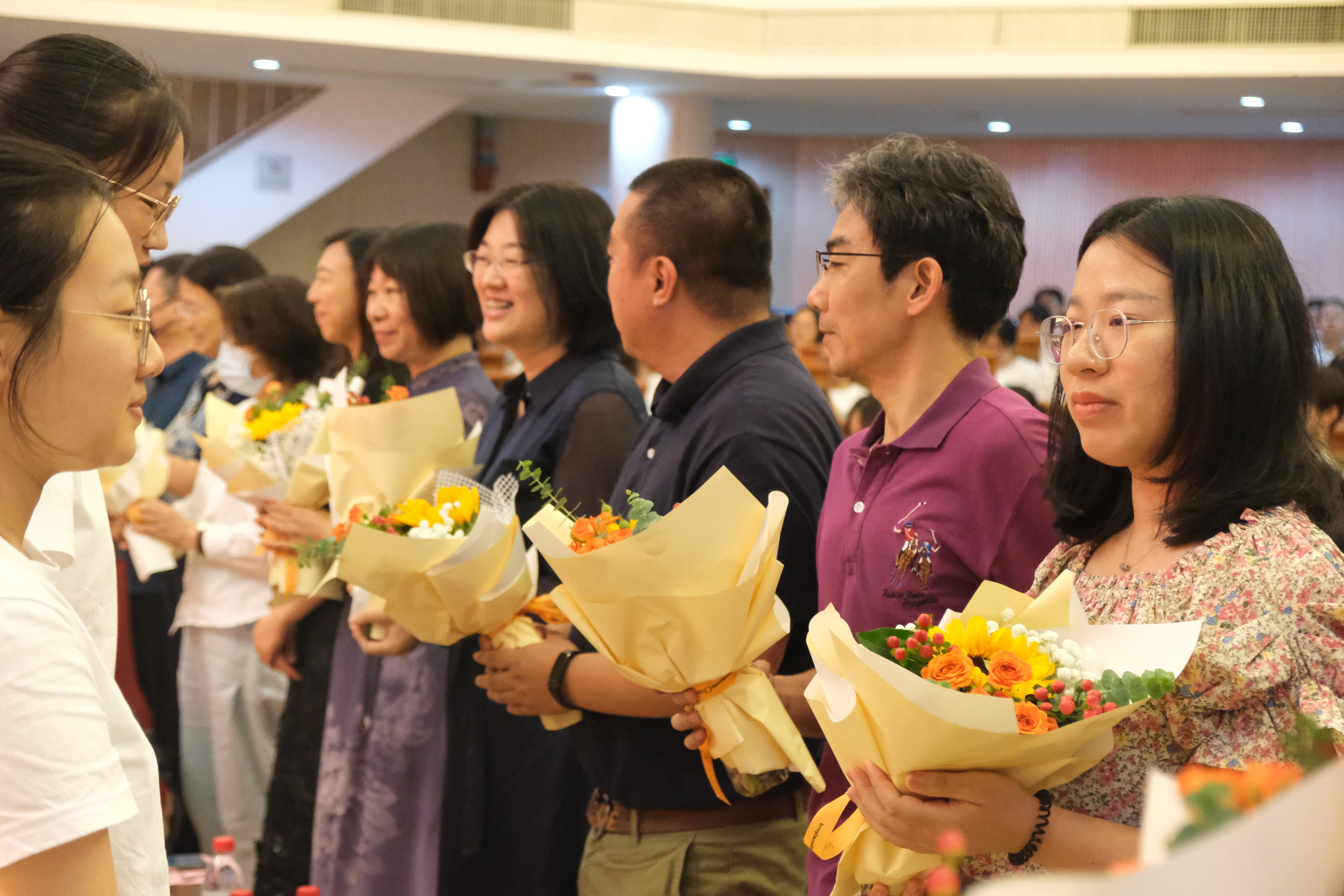 典礼最后,新生代表向全体与会老师献花,表达真挚的教师节祝福与敬意。
