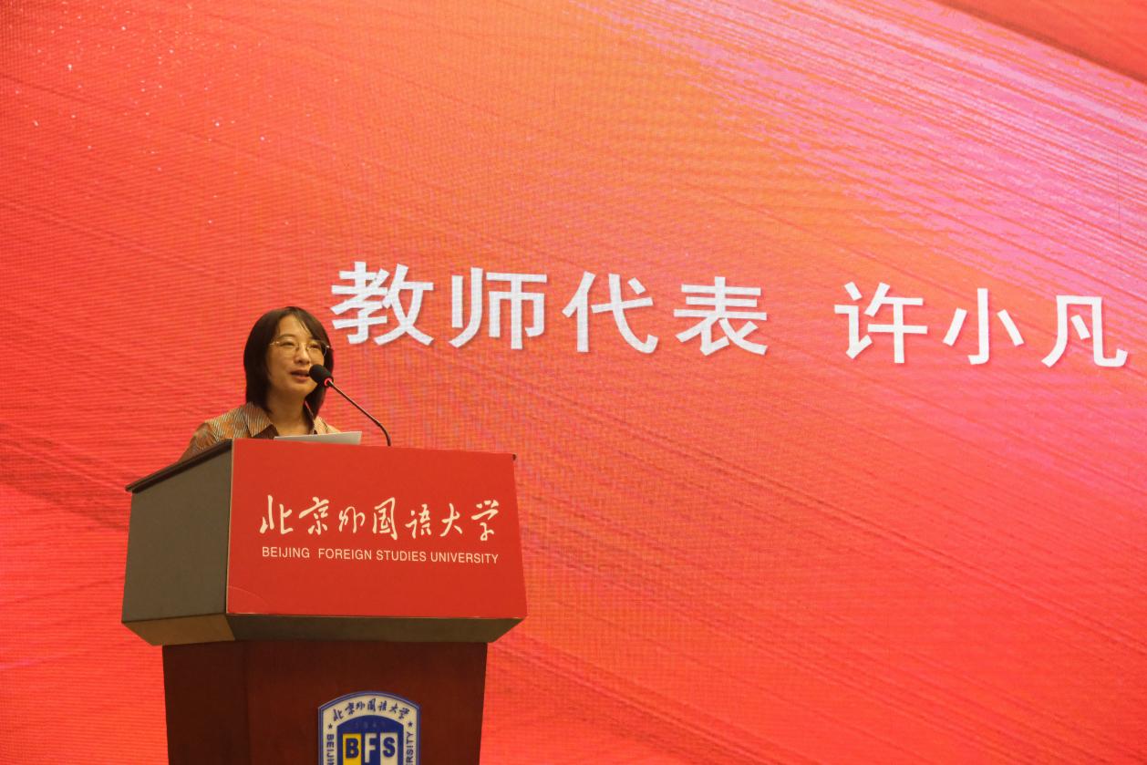 教师代表许小凡老师回忆了自己在北外的往昔点滴,并祝愿大家能够从足球比分365
