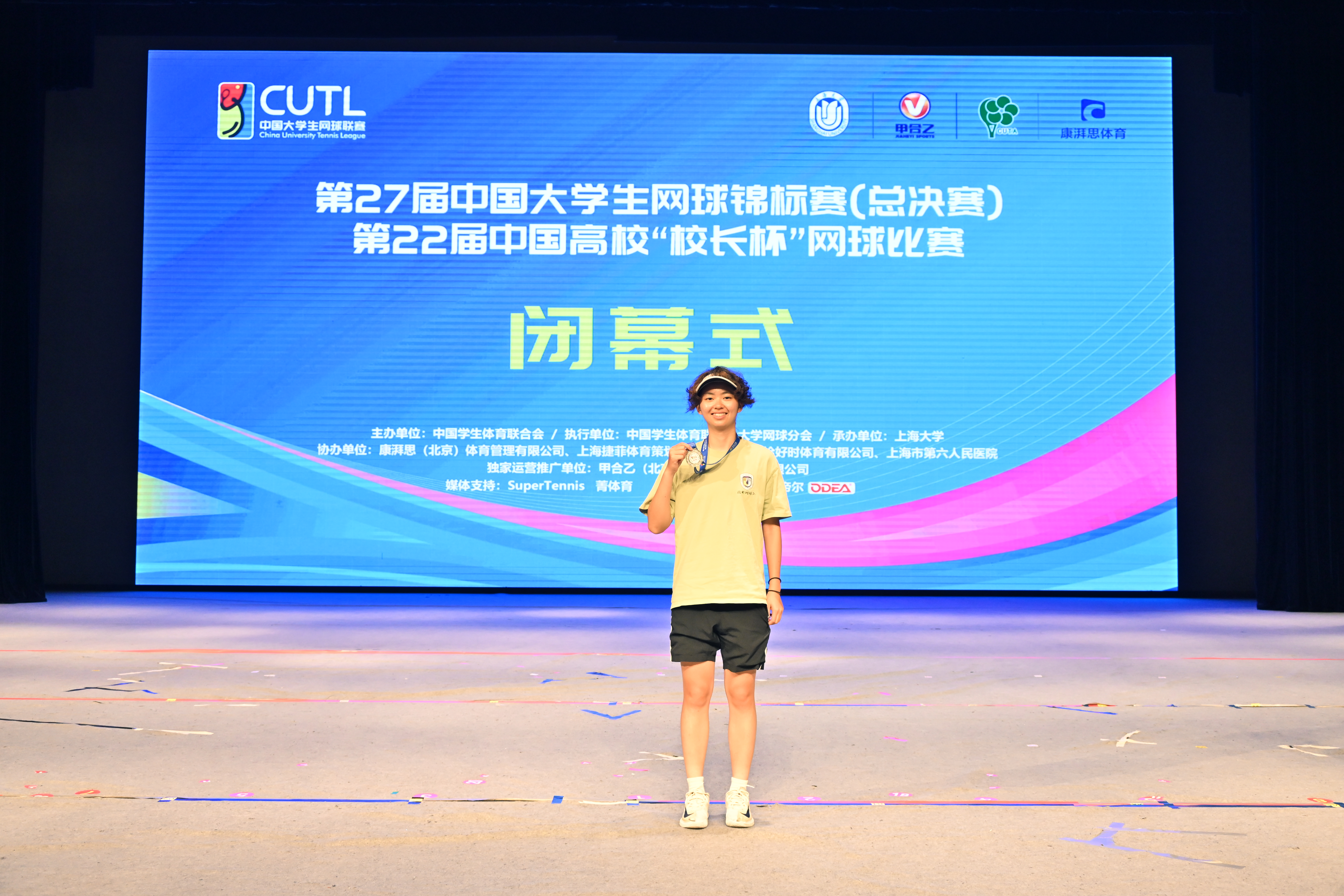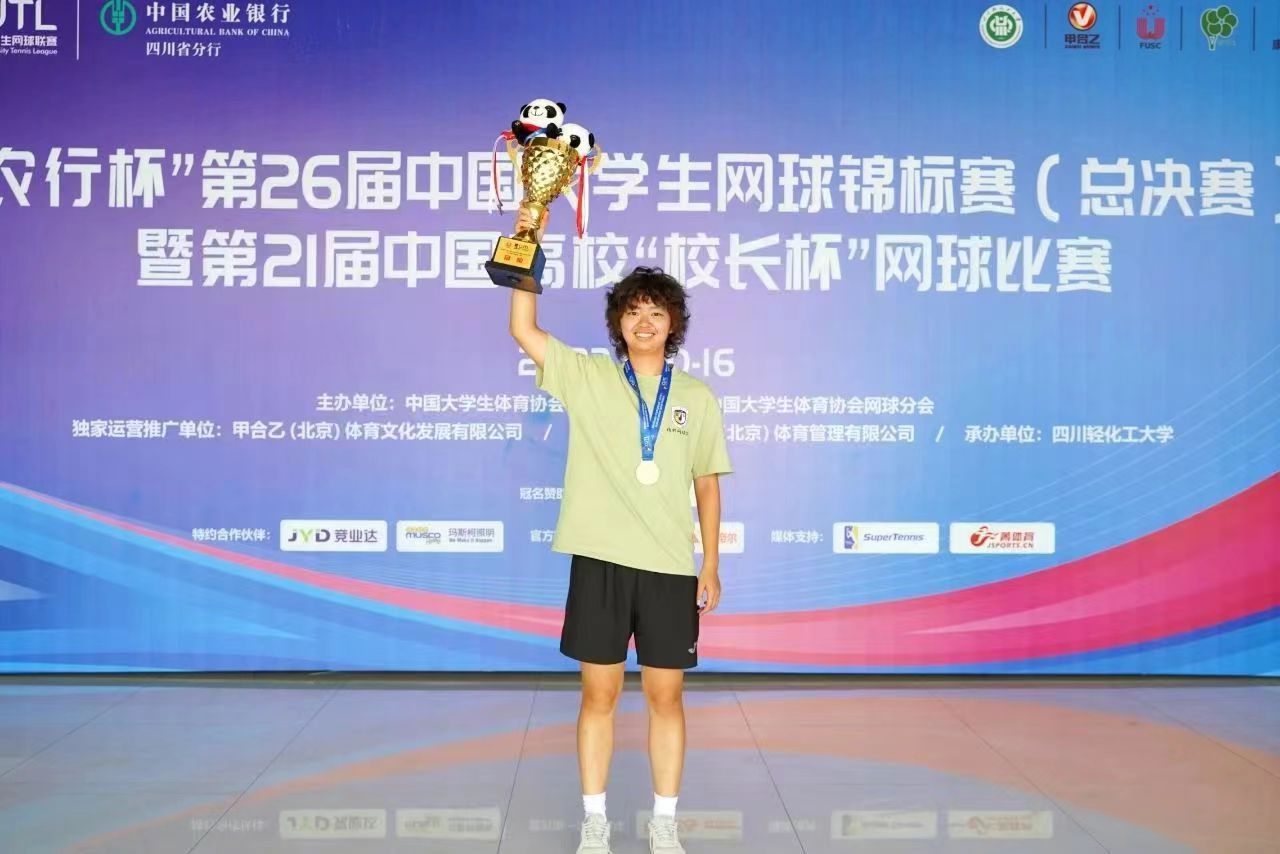 2020级本科生吴玥瑶获女子甲组单打第二名,所在的北京外国语大学网球队女队获女子甲组团体第五名,集体获体育道德风尚奖。
