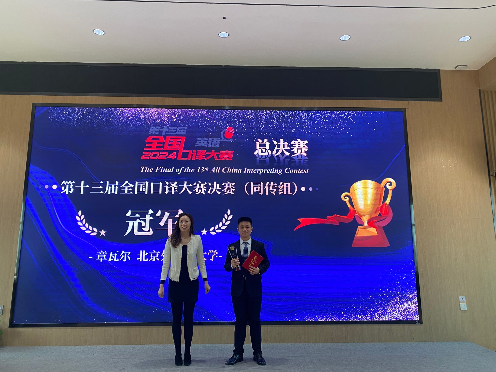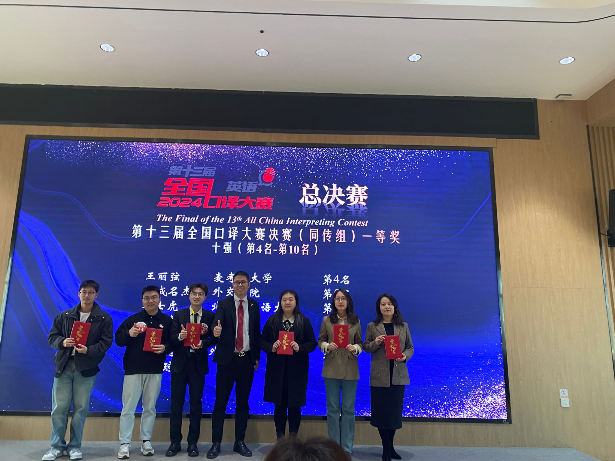 参赛学生实力强劲,展现出扎实的语言功底和优秀的专业水准,包揽同传、交传两个赛项冠军及全国一等奖五项、二等奖一项。多名同学跻身精英十强。