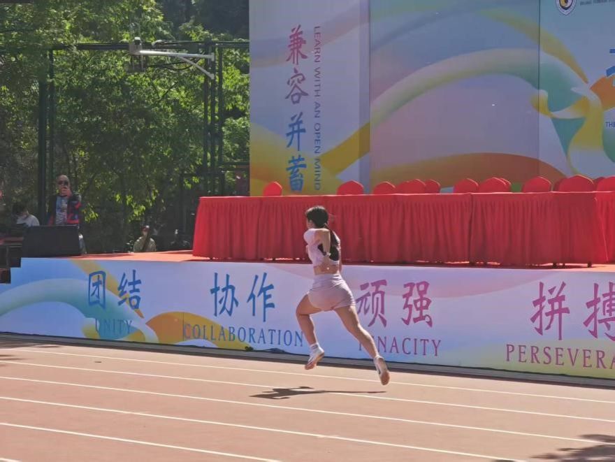 当日下午2时25分,女子400米决赛鸣枪开赛。发令枪响瞬间,张路宁同学迅速起跑,以稳健的步频和精准的节奏占据领先位置,并在最后冲刺阶段,展现出强大的爆发力,以绝对优势率先冲过终点线。