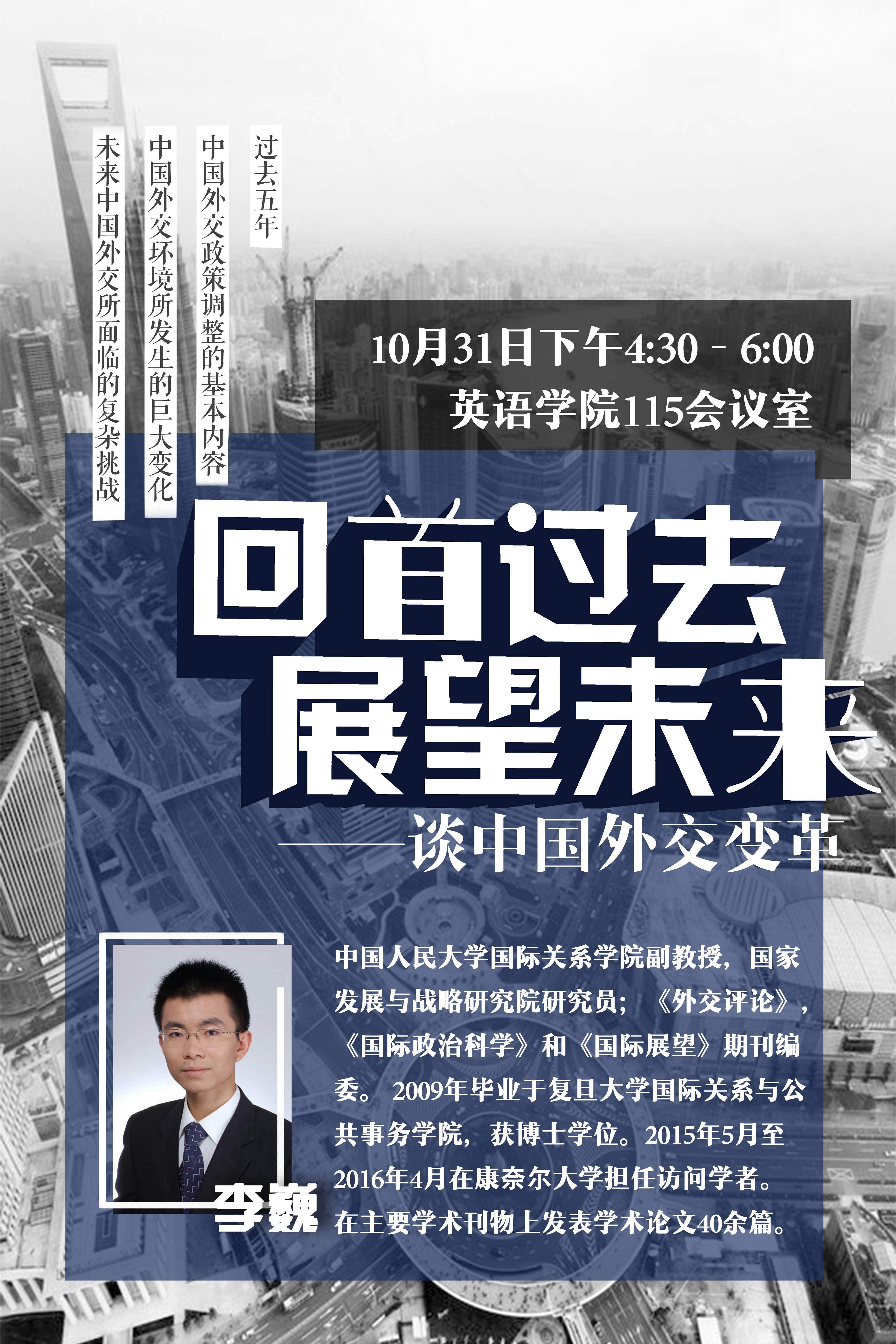 ——他们分别从人工智能时代的国际关系研究、国内微博中的朝鲜形象、中美互动与东亚变局、过去五年中国外交回顾与反思、特朗普与美国政党政治、现实主义理论与美国外交战略等角度,为英院的师生呈现了六场极具学术价值、同时紧扣国际关系研究前沿的学术盛宴。