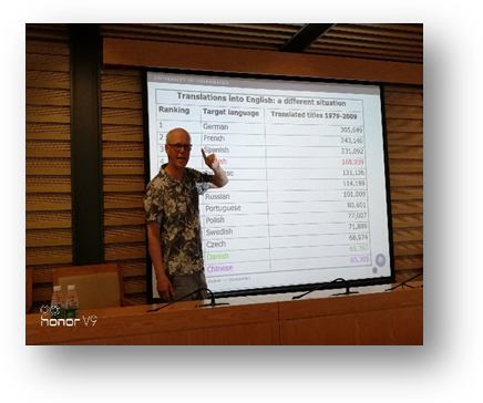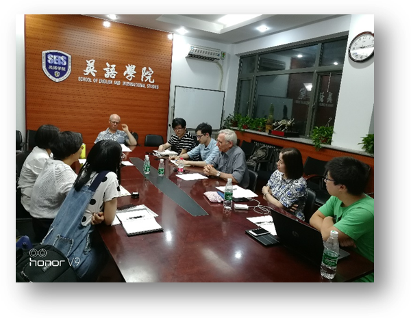 讲学的国际译学界知名学者,英国UCL大学翻译研究中心Theo Hermans教授。当天晚上,Gottlieb教授和Hermans教授还与翻译研究中心的博士生们进行了学术研讨,就博士论文写作的诸多问题释疑解惑。