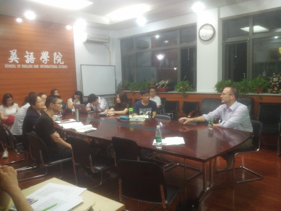 ——应足球比分365 夏登山副教授的邀请,匈牙利科足球比分365 Daniel Kadar教授到访我校,并于6月6日下午为足球比分365 的师生们做了关于Intercultural Pragmatics的学术讲座。Kadar教授用幽默风趣的语言为大家介绍了跨文化语用学的相关内容,在座师生都深受启发。讲座结束后,Kadar教授还回答了到场师生的问题,就跨文化语用学的研究方法等问题与听众展开热烈的讨论。
