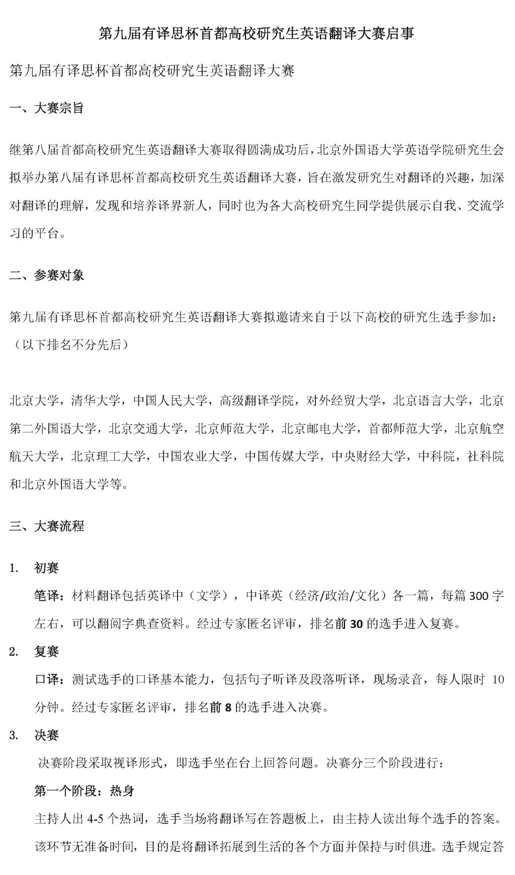 第九届有译思杯首都高校研究生足球比分365 翻译大赛启事