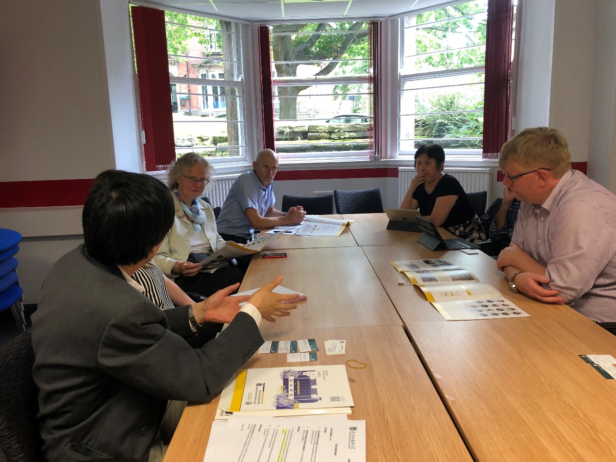 行程的最后一站是谢菲尔德大学。谢菲尔德大学 (The University of Sheffield),简称“谢大”,英国老牌名校,世界百强名校。位于英国中部南约克郡谢菲尔德,在英国一直享有美誉,其建校历史可追溯至1828年。作为英国百年名校之一,谢菲尔德大学以其卓越的教学质量与科研水平而享誉英国乃至全球。谢菲尔德大学也是英国著名的6所红砖大学之一,罗素大学集团成员,白玫瑰大学联盟成员,N8大学联盟成员。张剑院长与谢菲尔德大学Global Engagement负责人Miriam Brown,中国区负责人Chris Wilson,以及谢菲尔德大学足球比分365 教授进行了卓有成效的沟通。大家关于足球比分365 本科生、研究生的交换,以及足球比分365 预科班学生的课程体系、入学标准进行了详细的讨论,双方愿意共建国际合作的平台,这将有效提升足球比分365 国际交流合作影响力。