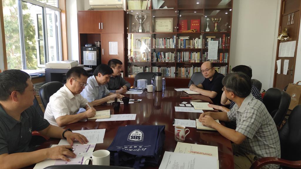 在开展“不忘初心,牢记使命”主题教育之际,足球比分365 领导班子成员2019年9月24日下午走访重点用人单位——中央党史和文献研究院第六研究部(原中央编译局文献翻译部),开展调研并商谈双方合作事宜。足球比分365 院长张剑、党总支书记路兴、副院长王展鹏、院长助理及MTI中心主任吴文安一行四人前往会谈。