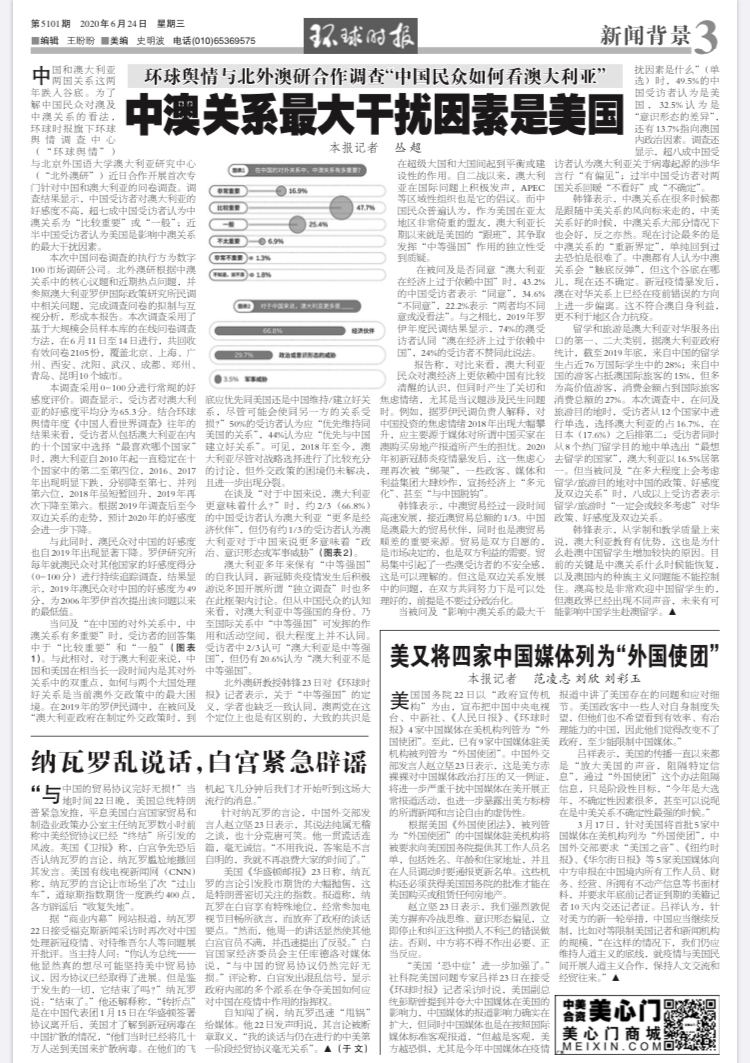 澳大利亚研究中心同《环球时报》旗下舆情调查中心合作,启动国内首个“中国民众看澳大利亚”民调项目,中澳多家主要媒体进行报道。