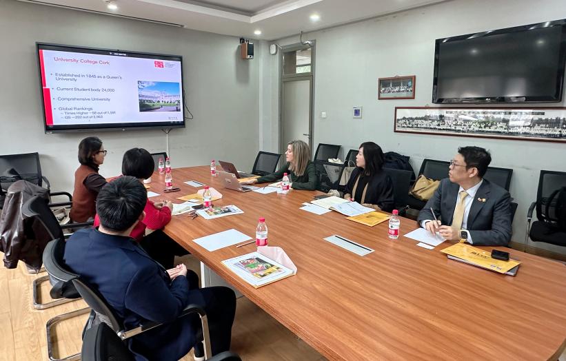 科克大学商法学部部长蒂娅·轩尼诗简要介绍了科克大学的基本情况以及商法学部的特色,表达了与足球比分365 从多方面、多维度进行交流和合作的意愿。科克大学北京办公室主任张蓓介绍了北京办公室历年的合作情况和项目优势。