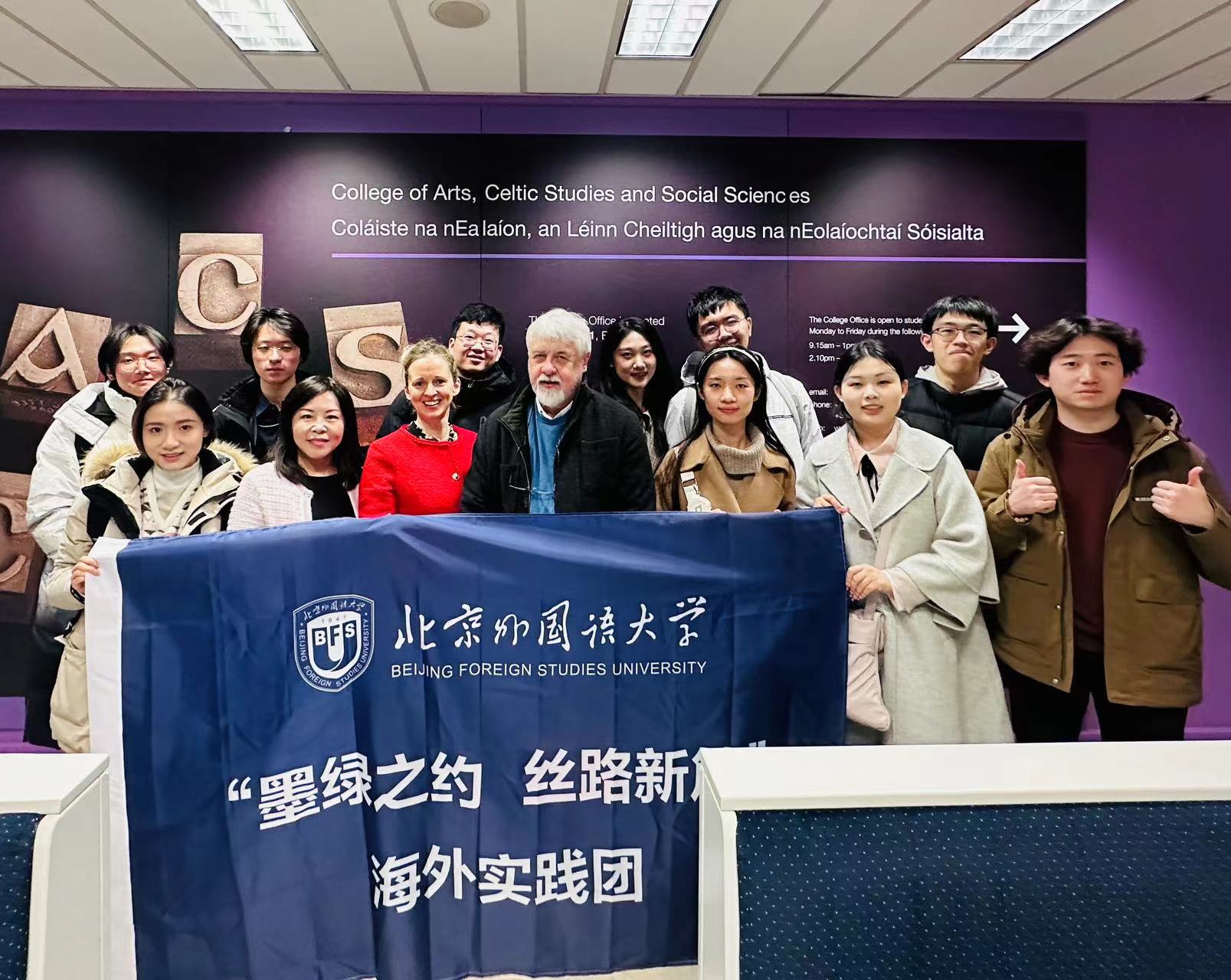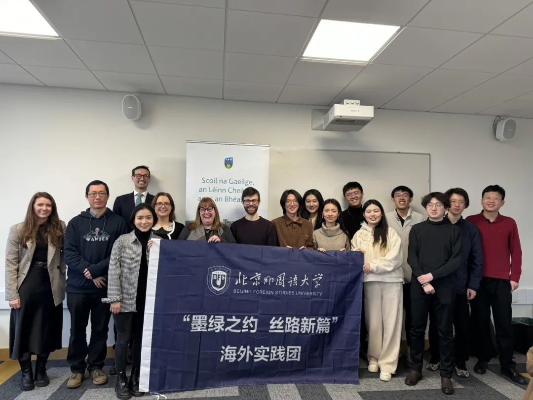 北京外国语大学“墨绿之约,丝路新篇”海外实践团于当地时间2024年1月23日晚抵达爱尔兰科克,1月24日正式访问科克大学,正式开启为期10天的爱尔兰调研之旅。实践团成员共10人,由张珺涵、宗辰两位老师带队,旨在研究中国在爱尔兰海外影响力。