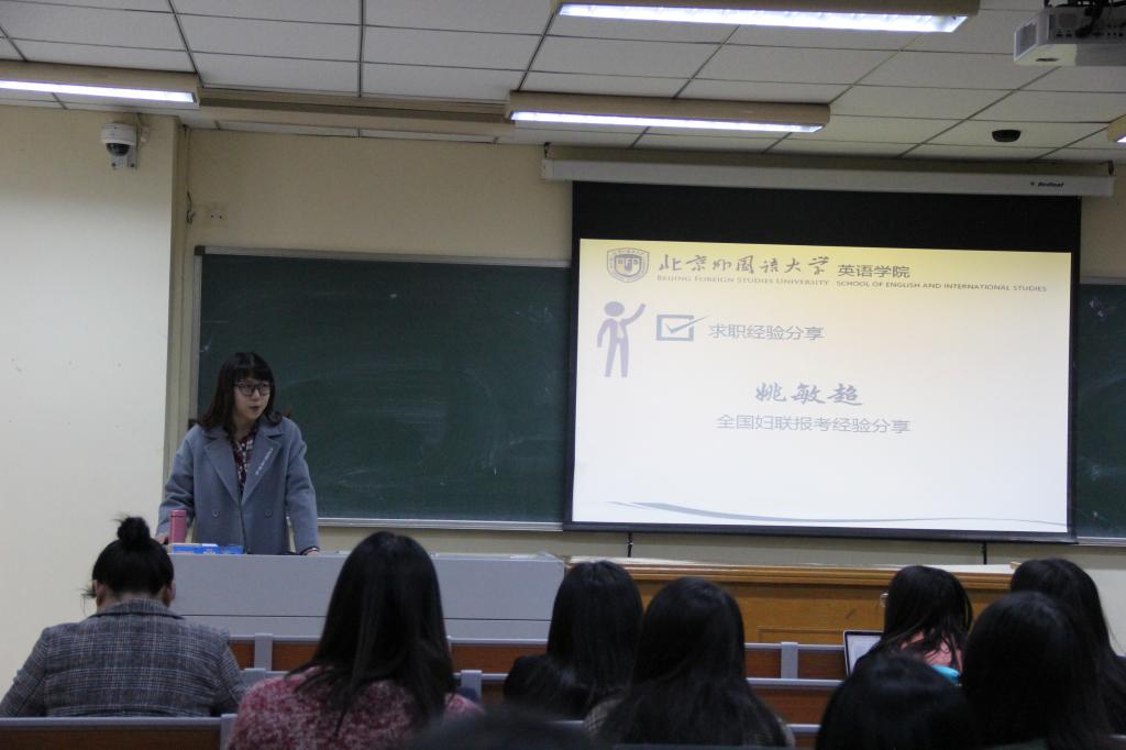 首先,是2019届毕业生的求职经验分享,共邀请了六位2019届毕业生分享了不同岗位的求职经验,仇舒一同学分享了自己申请北外非通用语师资项目相关经验,潘婷立同学向大家分享了自己如何成功通过外交部遴选,王雪意同学详细给大家普及了四川省选调生的报考流程,王昊同学给大家分享了自己成功进入北方装备有限责任公司的经历,姚敏超同学给大家介绍了自己报考全国妇联的历程,以及汤湘同学给大家分享了自己在面试人大附中分校的经验。