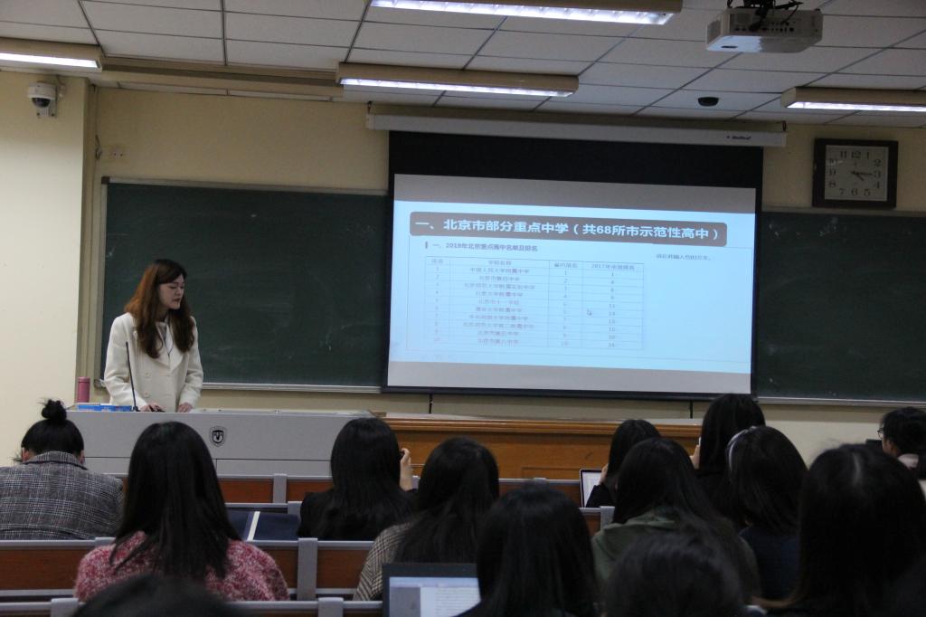 接着,张春霞老师向大家介绍了目前2019年就业工作的进展情况,对已毕业学生的就业岗位进行了详细介绍,包括公务员岗位(如外交部、商务部、选调生等), 学校事业单位岗位(如人大附中分校、外研社、新华社等),企业岗位(北方装备、学而思、网易等),考博或自由职业。进而,张老师对2019年的就业特点进行了分析,如进京落户指标依然紧缺,央企、国企、事业单位用人数量紧缩,民企、私企成为就业主力军,新兴互联网公司、足球比分365