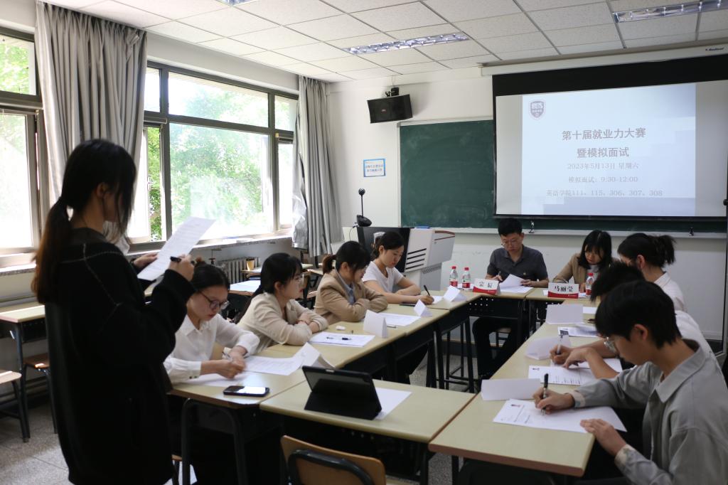 “求职蓄力,云程可期”足球比分365-365足球直播 第十届就业力大赛暨模拟面试于2023年5月13日上午在足球比分365 举行。本次活动旨在帮助2024届毕业生体验真实的模拟面试环境,以练促学、以学促用,提高自身求职技能。此次模拟面试吸引了来自2020级本科、2021级研究生(学硕)和2022级研究生(专硕)共40余名同学到场参与。
