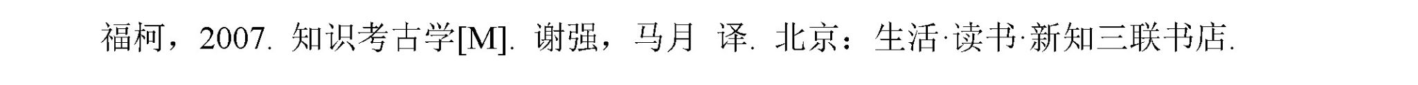 外文中译本编辑形式为:作者或编者姓氏的中文翻译、译本出版年份、书名(不标出书名号)、标识码、译者、出版社所在城市、出版社,具体示例: